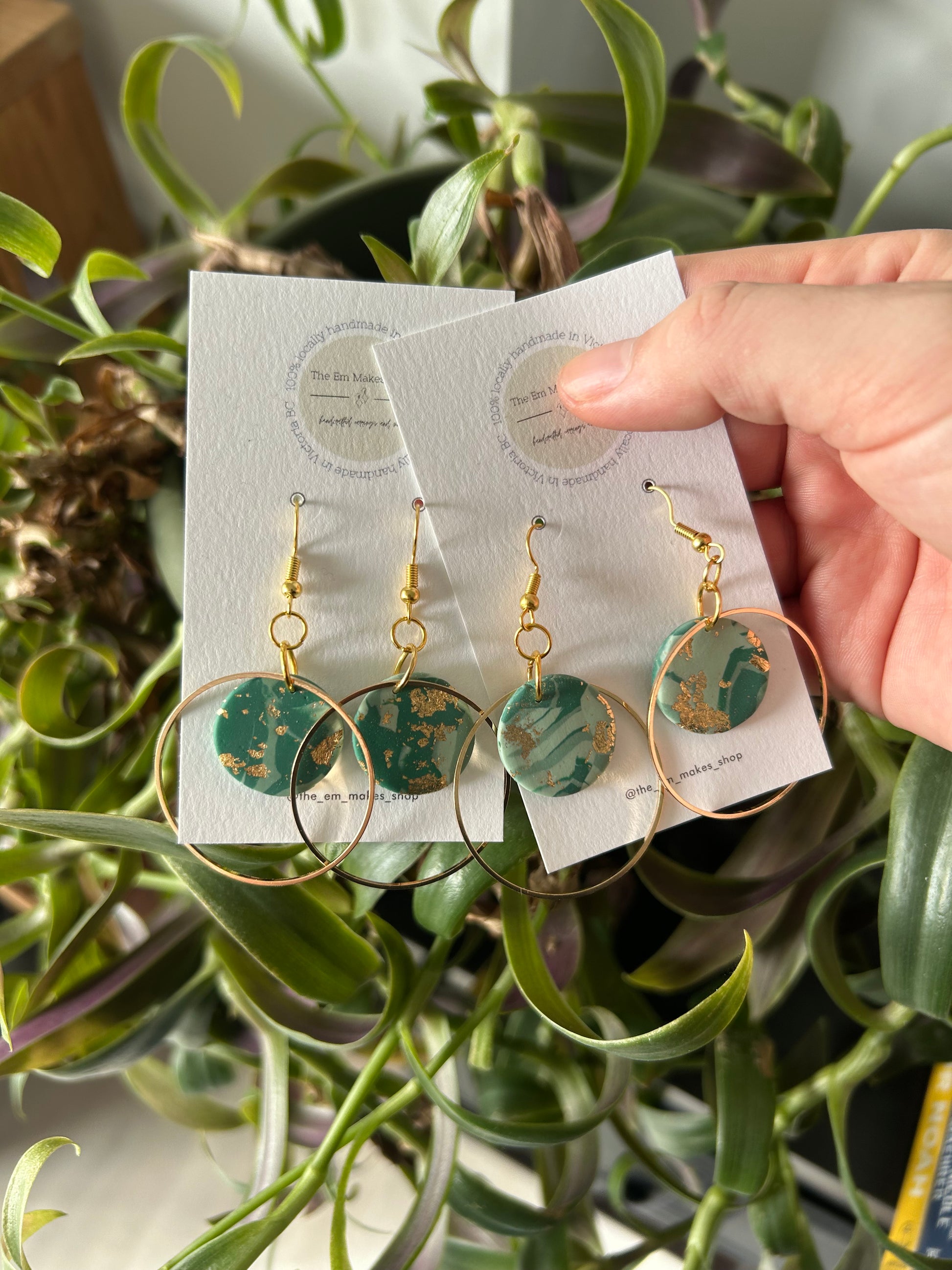 Available in a few different colours! Double dangles are available in gold or silver when there is no gold leaf involved.