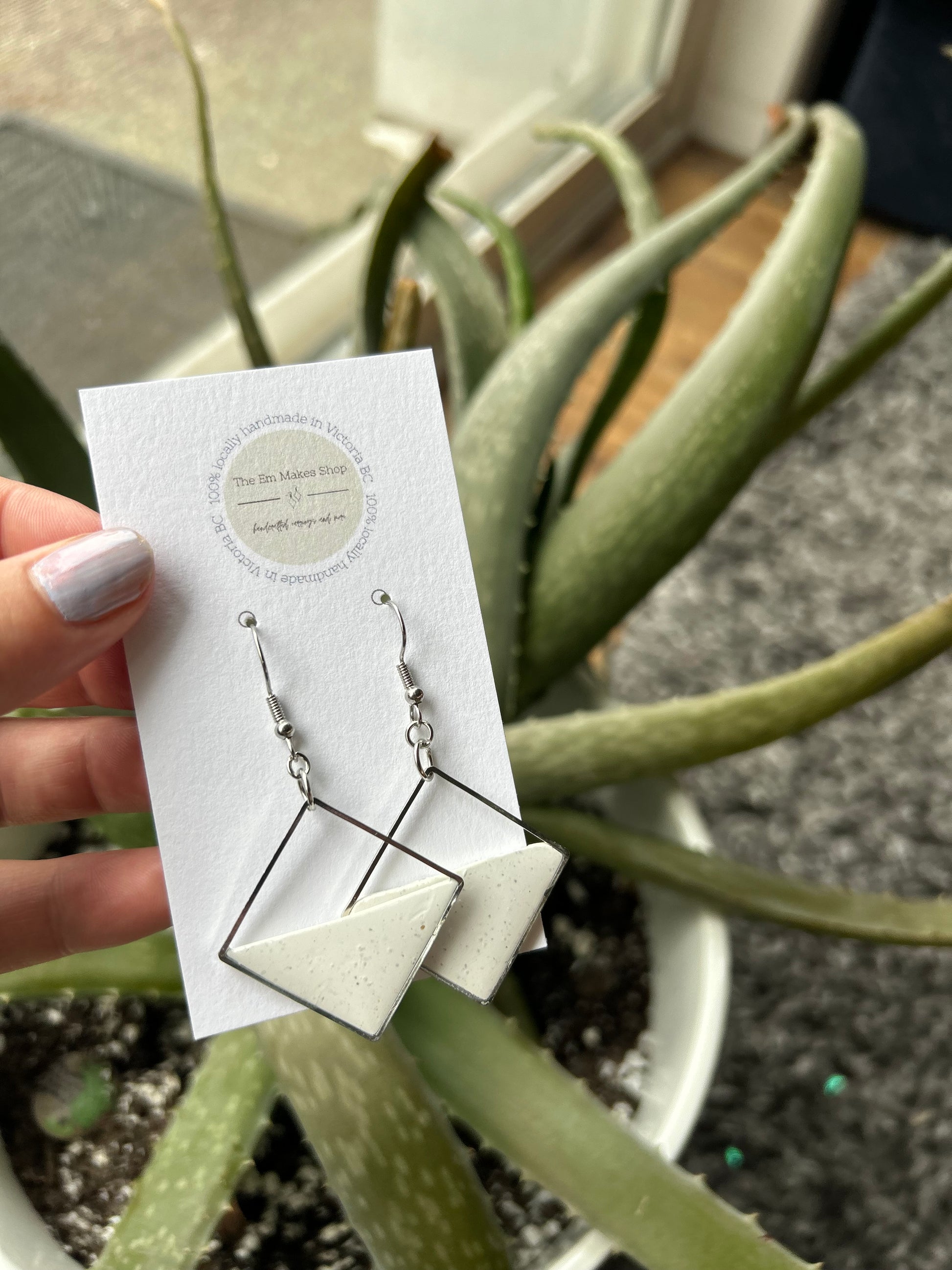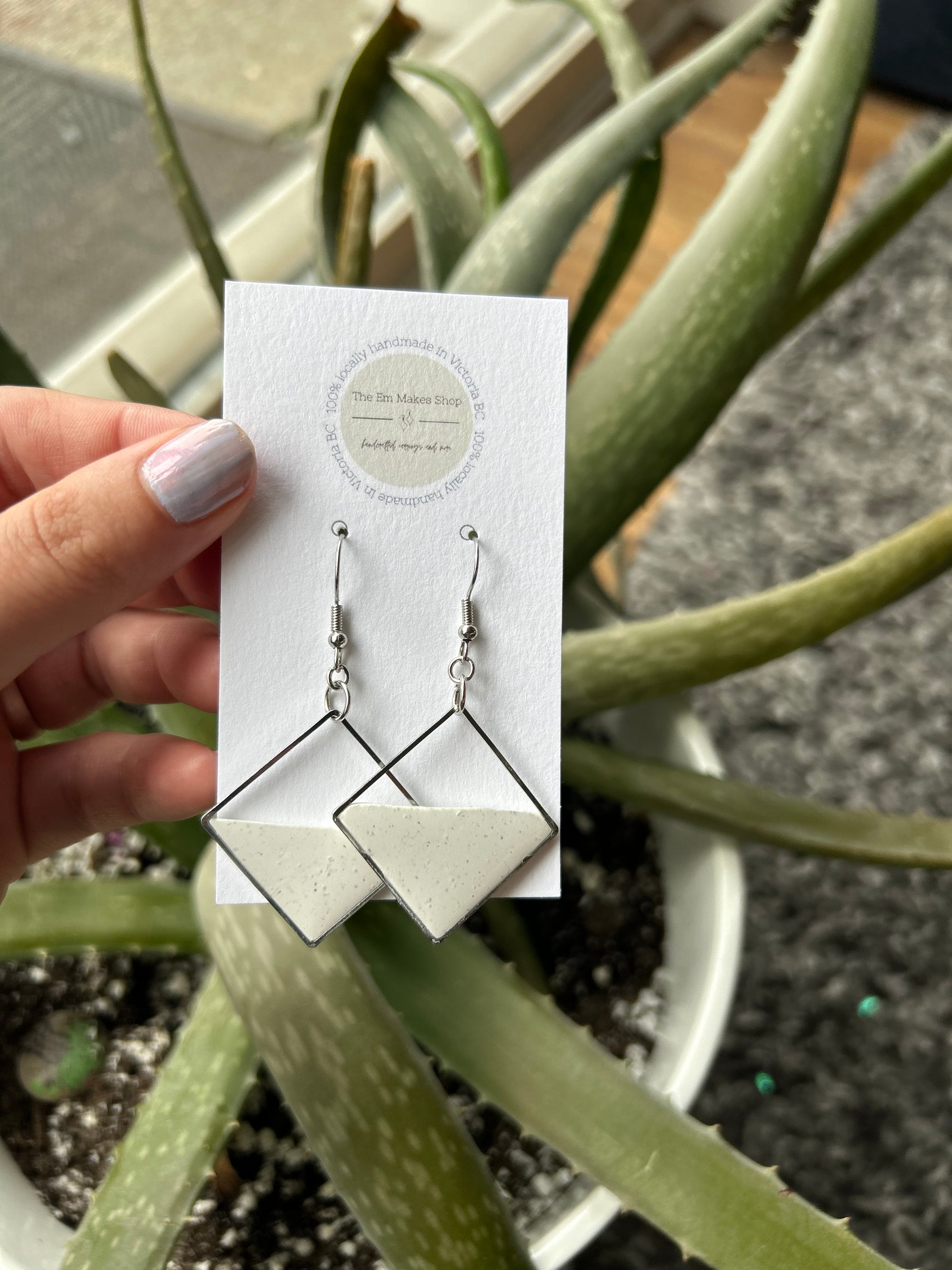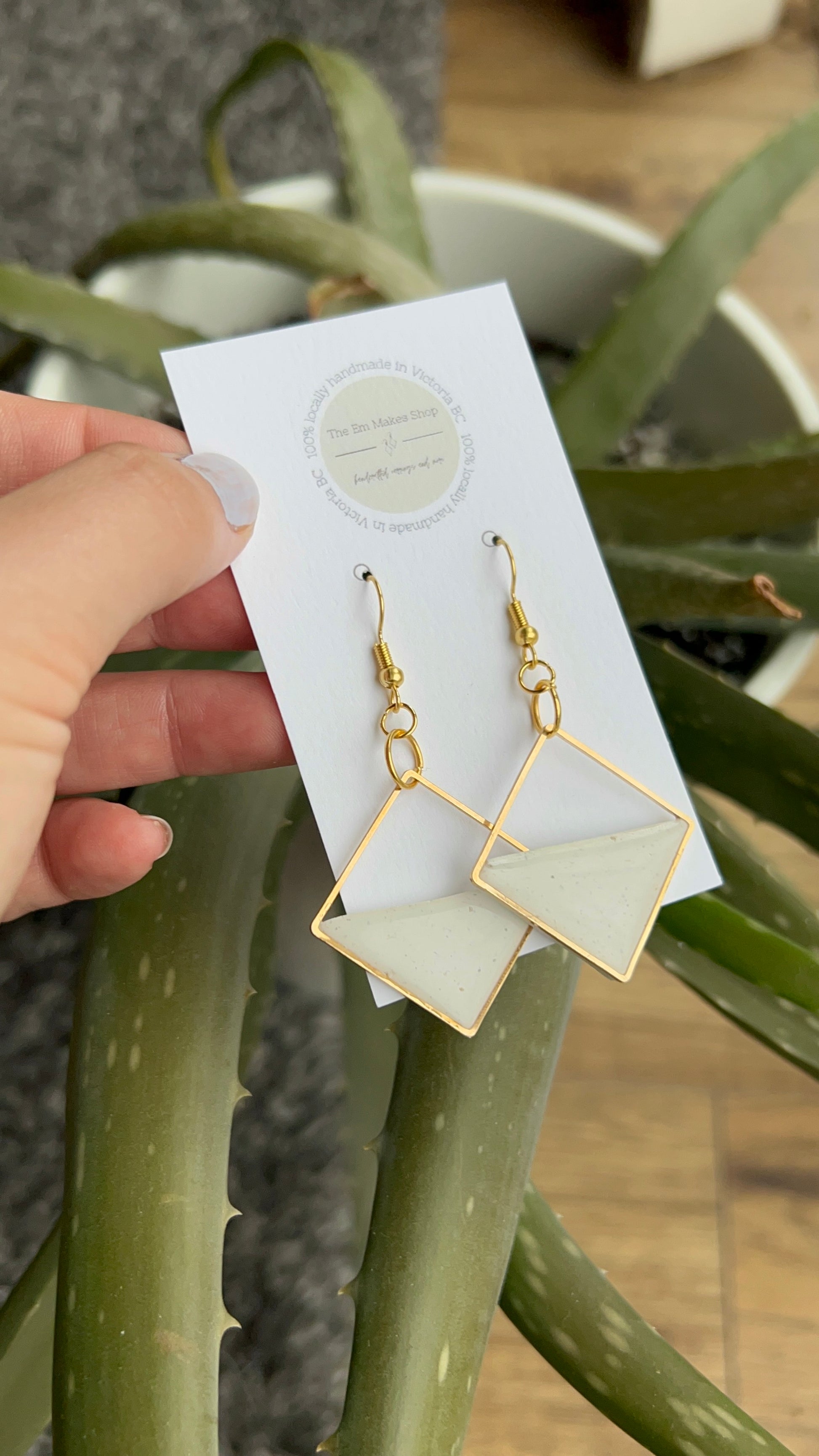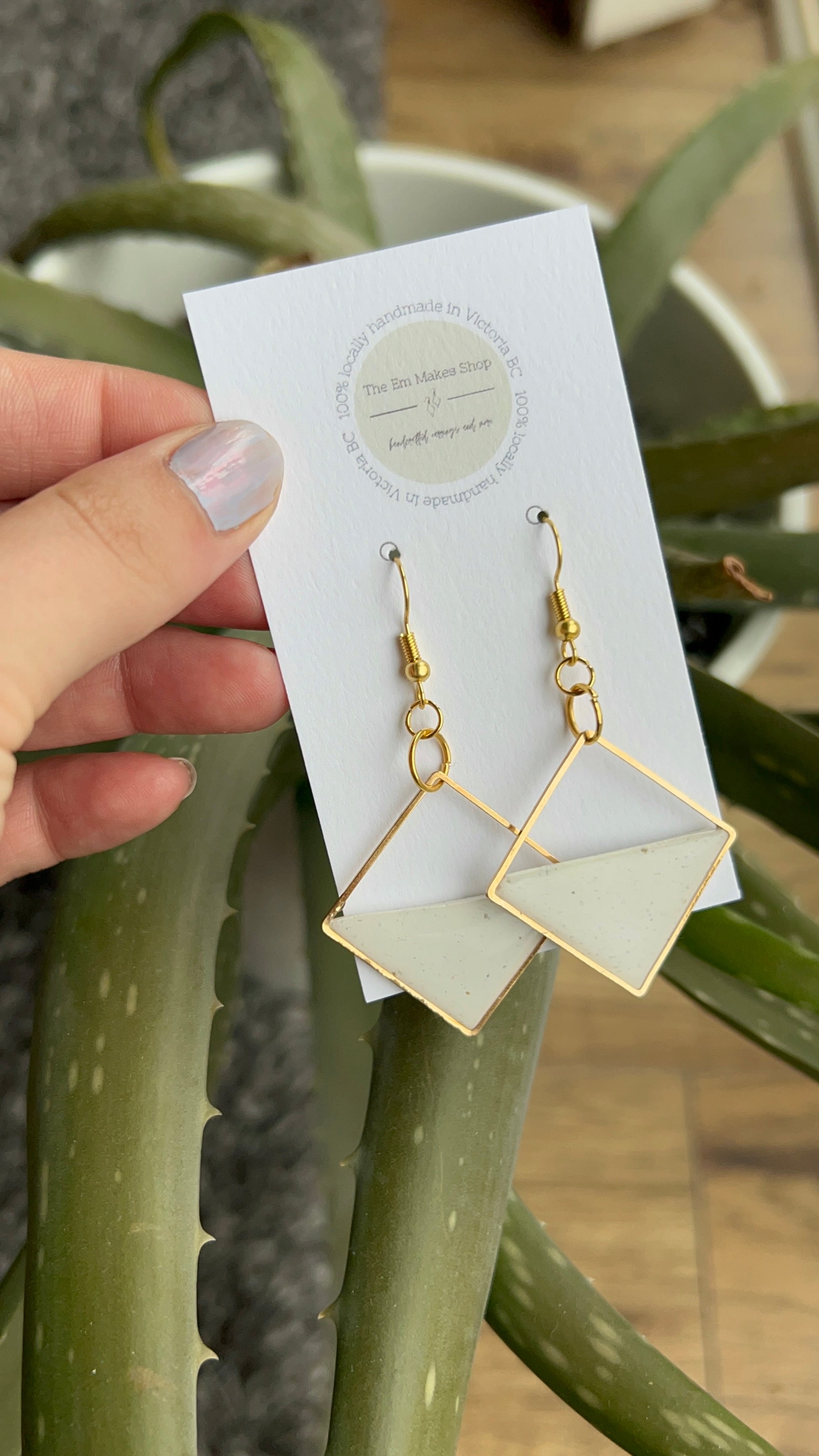 Polymer clay resin, and a lighter gold plated accent. Made of light weight polymer clay and gold plated stainless steel available in gold or silver